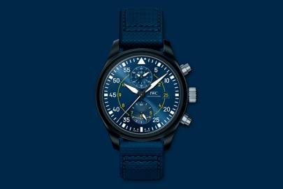 IWC has form when it comes to pilot watches – the brand’s first dedicated pilot’s watch landed back in 1936. Keeping this lineage alive, the new Pilot’s Watch Chronograph Edition Blue Angels has been designed in collaboration with the US Navy’s Blue Angels flight demonstration squadron – the equivalent to our Red Arrows. The deep blue dial with outer minute ring and inner hour ring is inspired by early military observer’s watches, while the 44.5mm black ceramic case brings some 21st-century tech. Inside, an in-house calibre 89361 flyback chronograph offers 68 hours of power reserve, which is protected from precision-impairing magnetic fields by an inner cage made from soft iron. Damage to the front glass due to sudden drops in air pressure has also been mitigated thanks to a special securing mechanism, which ensures it stays in place no matter how extreme your aerial stunts.