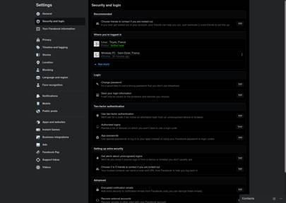 You’ll find Facebook’s main privacy options on the settings screen. Under the security and login tab, you should enable two-factor authentication, check what devices are logged in and enable alerts for unauthorised logins if you suspect someone may try to break into your account.