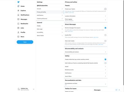 If you tick Protect your tweets on the main Privacy and safety screen, only people who follow you will be able to see anything from your account, past or present. They also won’t be publicly searchable. Receive messages from anyone in the Direct messages section is unticked while you’re here and disable photo tagging.