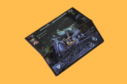 The huge, strikingly punchy and, predictably inky AMOLED screen is bright and commands attention. It’s also very reflective and has some give to it; unsurprising, given the fact it’s plastic. As you open and close it, you’ll also see some ripples flow along its display’s surface, and there is a crease when viewed off-angle in tablet mode. Head-on, however, it’s a beauty, and the screen feels taut when fully opened or clasped shut. It’s also perfectly responsive and comfortable to swipe or tap on, even when gaming.