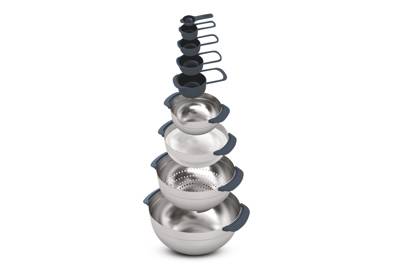 Nobody does space-saving kitchen kit quite like Joseph Joseph, but the penchant for rainbow colours and plastic can leave the serious chef feeling tepid. However, the Nest 100 uses 18/8 stainless steel to dial down the hues and improve the quality. The set comprises five measuring cups inside a small non-slip metal mixing bowl, a stainless-steel mesh sieve, a colander and a large, meringue-loving non-slip mixing bowl, all reassuringly dishwasher safe.