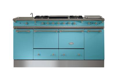 Made in France since 1796, Lacanche builds its ovens to order, allowing customers to choose the type and number of ovens – shown here, two 84-litre cavities – colour, dimensions, layout of the hob, 29 enamelled finishes, and a wide range of oven and hob configurations: from dual-fuel to all-gas, five-zone induction tops, simmer-plates, and even water bath steamer with tap.