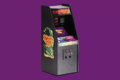 “Authenticity is our first priority and we achieve this by capturing as many layers of detail from the original machines as possible,” Prychak adds. He’s not kidding — the most recent RepliCade, Dragon’s Lair, is based on the iconic 1983 LaserDisc game, which featured Disney-style animation in place of raster or vector graphics. Suitably, it not only includes the original game’s cabinet art, control layout and secondary scoreboards, but also a replica LaserDisc player within a rear storage drawer, a replica LaserDisc to put inside it and an impossibly small replica remote.