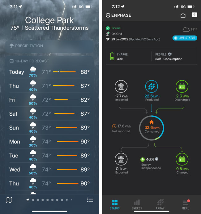 Time Of Use is another factor. I also just switched to my power company’s Electric Vehicle Time of Use Rate and the Enphase app can be set up to take advantage of this.