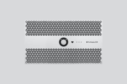 “But one of the geniuses in this display is using this hole pattern as a heatsink on the back of Pro Display XDR. On Mac Pro it is used to move air through the system, but on Pro Display XDR it actually doubles the surface area of the aluminium and so it acts as a heat sink and draws the heat out of the LEDs,” says Novielli.