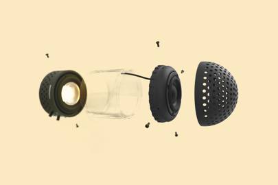 As for the sound, which is kind of important for a portable speaker, this is handled by a 2.5in full-range driver and passive 3in radiator channelling those five watts. You get an omnidirectional sound and you can stream to just one or stereo pair. There is no app and no voice control. The vibrating bass-and-light element sits in the bottom of the speaker beneath a borosilicate glass tube all encased in black aluminium. An IPX2 rating means the Light can handle a few splashes, even the occasional spill but not a downpour.